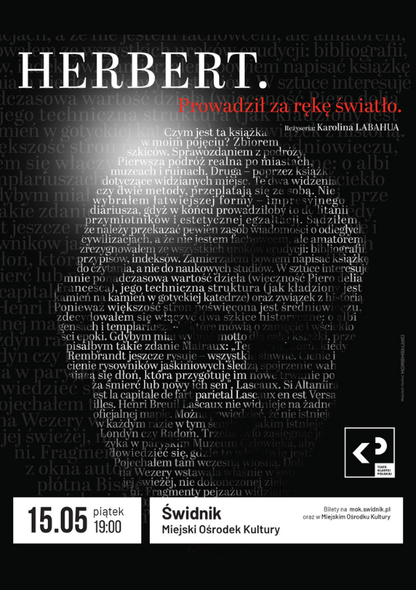 Spektakl muzyczny inspirowany życiem i twórczością Zbigniewa Herberta, oparty na zestawieniu esejów z jego zbioru „Barbarzyńca w ogrodzie", będący literacką podróżą do świata kultury, w której przewodnikiem jest sam autor. Przewodnik ten prowadzi widza przez piękno i harmonię dzieł kultury śródziemnomorskiej oraz wybrane utwory poetyckie.
